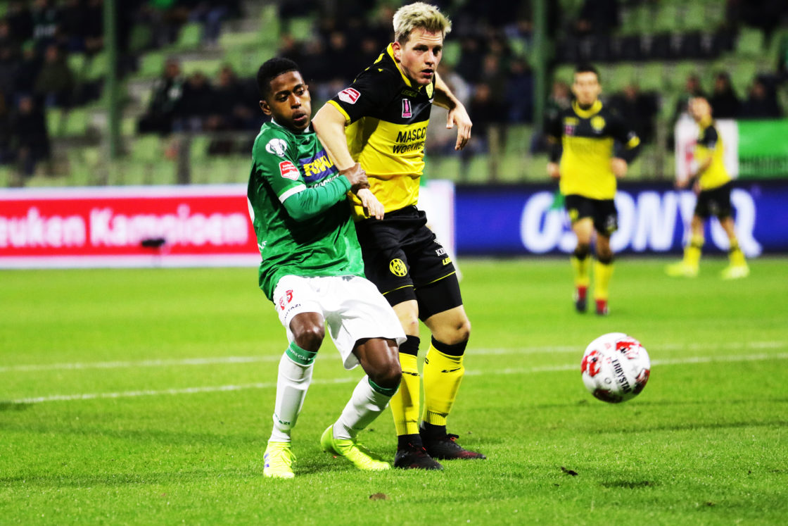 Op de foto: FC Dordrecht kwam in de meest recente thuiswedstrijd niet verder dan een 1-1 puntendeling met Roda JC.