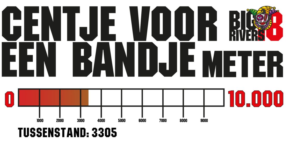 De teller voor Centje voor een Bandje staat ondertussen op 3.305 euro. Dat is 33 procent van het streefbedrag van 10.000. Wil je ook zorgen dat het festival gratis en toegankelijk voor iedereen blijft? Doneer dan via www.bigrivers.nl en maak ook nog eens kans op mooie prijzen, zoals een Cortina-fiets, aangeboden door de Fietsendokter of een airfryer, aangeboden door KüchenTreff.