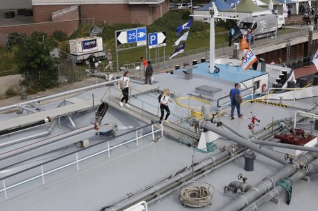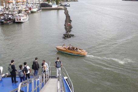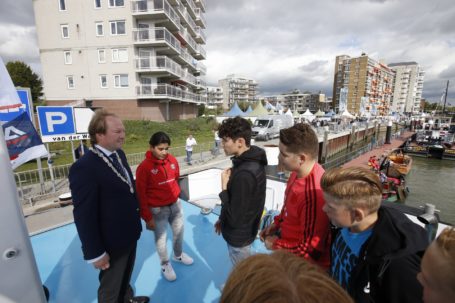 ZWIJNDRECHT – De eerste editie van de Binnenvaartdagen Zwijndrecht is vanochtend van start gegaan. Bij de opening van het evenement waren zowel de huidige burgemeester van Zwijndrecht Hein van der Loo als de vorige burgemeester Dominic Schrijer, in zijn huidige rol als voorzitter van branchevereniging van de binnenvaart BLN-Schuttevaer, aanwezig. Vandaag nog tot 23.00 uur en morgen van 10.00 tot 23.00 uur is er vol programma met livemuziek en interessante en spectaculaire ‘maritieme zaken’ op en langs de Zwijndrechtse kade van de Oude Maas. Vandaag waren de leerlingen van onder meer het Da Vinci College, Loket en het Scheepvaart en Transportcollege van groep 7 en 8 van basisscholen in Zwijndrecht en omgeving uitgenodigd op het gratis toegankelijke evenement. (Foto’s: Thymen Stolk)