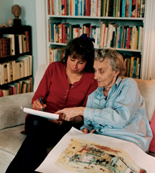 Onder: Marit Törnqvist met Astrid Lindgren. (Foto: Lars Grönwall)