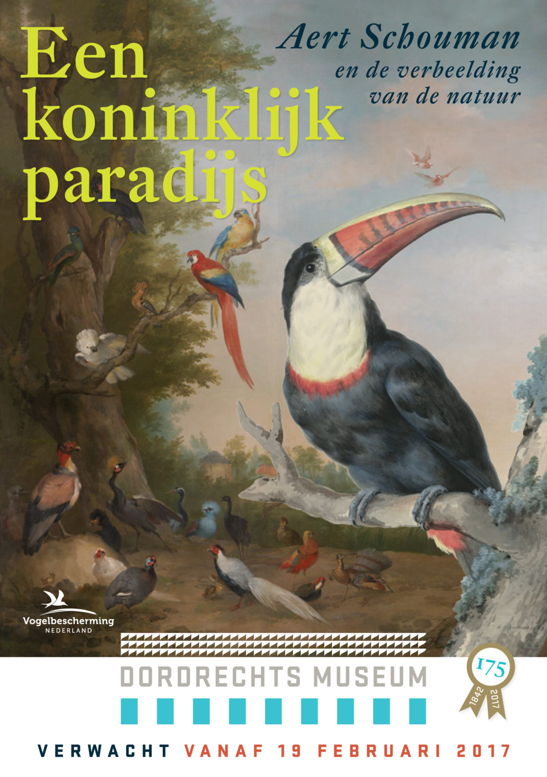 DORDRECHT Vogelbescherming Nederland en het Dordrechts Museum gaan samenwerken rond de tentoonstelling Een koninklijk paradijs – Aert Schouman en de verbeelding van de natuur. Deze omvangrijke expositie is vanaf 19 februari 2017 te zien in Dordrecht. Aert Schouman (1710-1792) is de belangrijkste Nederlandse dierenschilder van de achttiende eeuw. “Zijn aquarellen met exotische vogels behoren tot de mooiste die er ooit zijn gemaakt. Schoumans werk is een waar paradijs voor zowel kunst- als vogelliefhebbers”, aldus het museum.