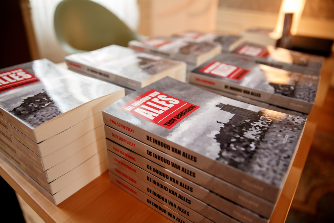 De onthulling van het boek ‘De inhoud van alles’ bracht zoveel publiek op de been, dat een deel van de toehoorders genoegen moest nemen met een staanplaats. Het mocht de sfeer niet drukken. Toen de bevlogen auteur aan het eind van de presentatie de eerste bladzijden van de wetenschappelijke thriller voorlas, was het muisstil in de zaal. Met het spannende intro nam Thon Schreuders iedereen mee in de eerste scene van een bloedstollend avontuur.