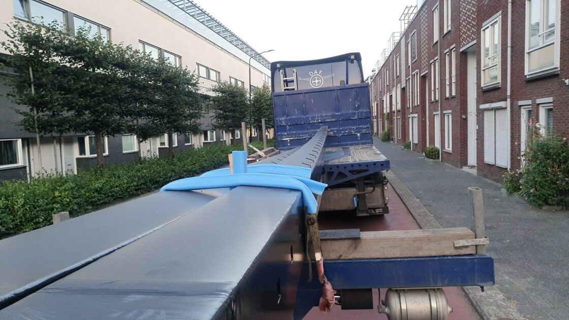DORDRECHT – Vanmorgen arriveerden de nieuwe roeden voor molen Kyck over den Dyck. De vier 26 meter lange stalen objecten kwamen met een bijzonder transport aan op de Noordendijk. De komende week worden de nieuwe hekwerken erop gezet. In de loop van de volgende week komt een 60 meter hoge kraan ter plaatse om de oude roeden te verwijderen en de nieuwe wieken op de molen de monteren. De hoop van het stichtingsbestuur is om op 11 september, een dag voor Open Monumentendag, voor het eerst sinds oktober vorig jaar weer op de wind te kunnen draaien. Molenaar Peter Raggers was vroeg uit de veren om het moment van arriveren mee te maken. “Wij zijn heel blij dat dit, mede dankzij een inzamelingsactie waaraan heel veel Dordtenaren hebben bijgedragen, is gelukt.” (Foto’s: THymen Stolk)