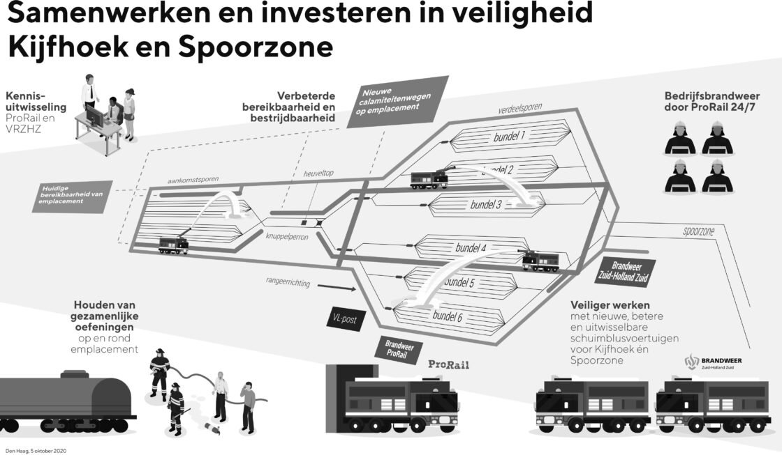 de weg en het bijdraagt aan het halen van onze klimaatambities. Samen met de bestuurders van de gemeente Zwijndrecht, ProRail, de Veiligheidsregio Zuid-Holland Zuid en DB Cargo zijn belangrijke stappen gezet om de veiligheid op het emplacement Kijfhoek beter te borgen.Ik ben het met burgemeester Van der Loo eens dat we er daarmee nog niet zijn. Dekomende jaren zal Kijfhoek ingrijpend worden gemoderniseerd, zodat het goederenvervoer nog veiliger en efficiënter kan worden afgehandeld.