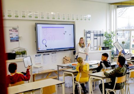 DORDRECHT – De deuren van de basisscholen, middelbare scholen en de scholen voor speciaal (voortgezet) onderwijs gingen vanmorgen weer open. Ook de leerlingen van IKC De Regenboog, locatie Noordendijk, konden zich weer verheugen op klassikaal onderwijs. In de bovenbouw gaf Juf Laura weer les aan haar leerlingen.
