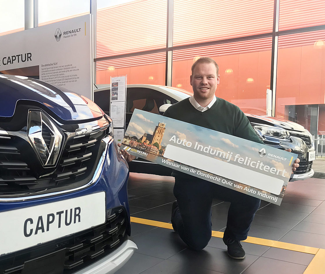 DORDRECHT – Wesley de Bruyn, verkoopleider bij Auto Indumij, dé Renault-dealer in Dordrecht, is helemaal klaar voor de prijsuitreiking aan de winnaar of winnares van de Dordrecht Quiz. Dus ben jij een echte Dordrecht-fan en weet je de allerleukste plekjes in Dordrecht te vinden? Doe dan snel mee met deze leuke quiz. Je hebt nog twee dagen, want de laatste deelnamemogelijkheid is vrijdag 31 januari 23:59 uur.