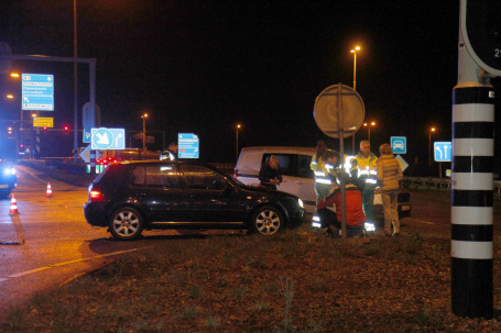 DORDRECHT – Op het kruispunt N3-A16 zijn maandagavond even na acht uur twee auto’s op elkaar gebotst. Beide voertuigen raakten flink beschadigd en werden weggesleept. De gealarmeerde ambulance heeft nog wel de inzittenden nagekeken, maar er hoefde niemand mee naar het ziekenhuis. Het kruispunt werd tijdelijk afgesloten door de politie en Rijkswaterstaat. (Foto’s: Thymen Stolk)