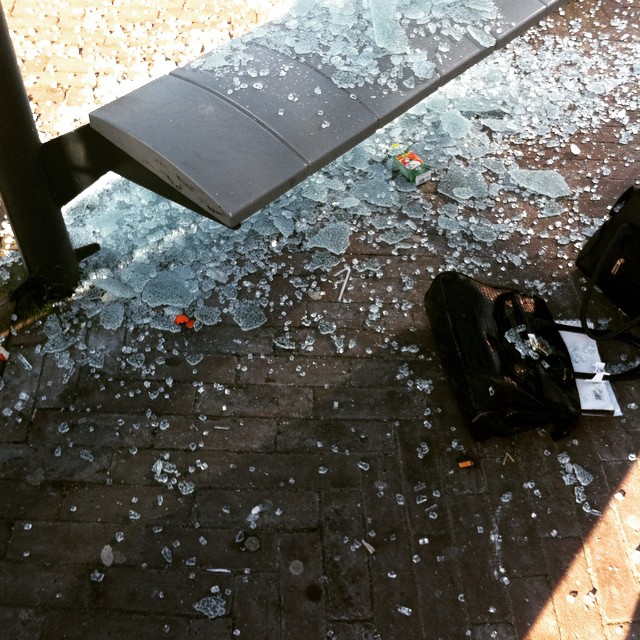 DORDRECHT – De politie heeft woensdag een 23-jarige man uit Papendrecht aangehouden, nadat hij bij het Leerpark in Dordrecht een bushokje had ingetrapt. Drie scholieren die op het bankje zaten kregen glas over zich heen. De verdachte trapte aan de achterkant de ruit in. Hij vluchtte en is later na overleg met het OM thuis opgehaald en aangehouden. De verdachte is ingesloten op het politiebureau. (Foto: Politie Dordrecht)