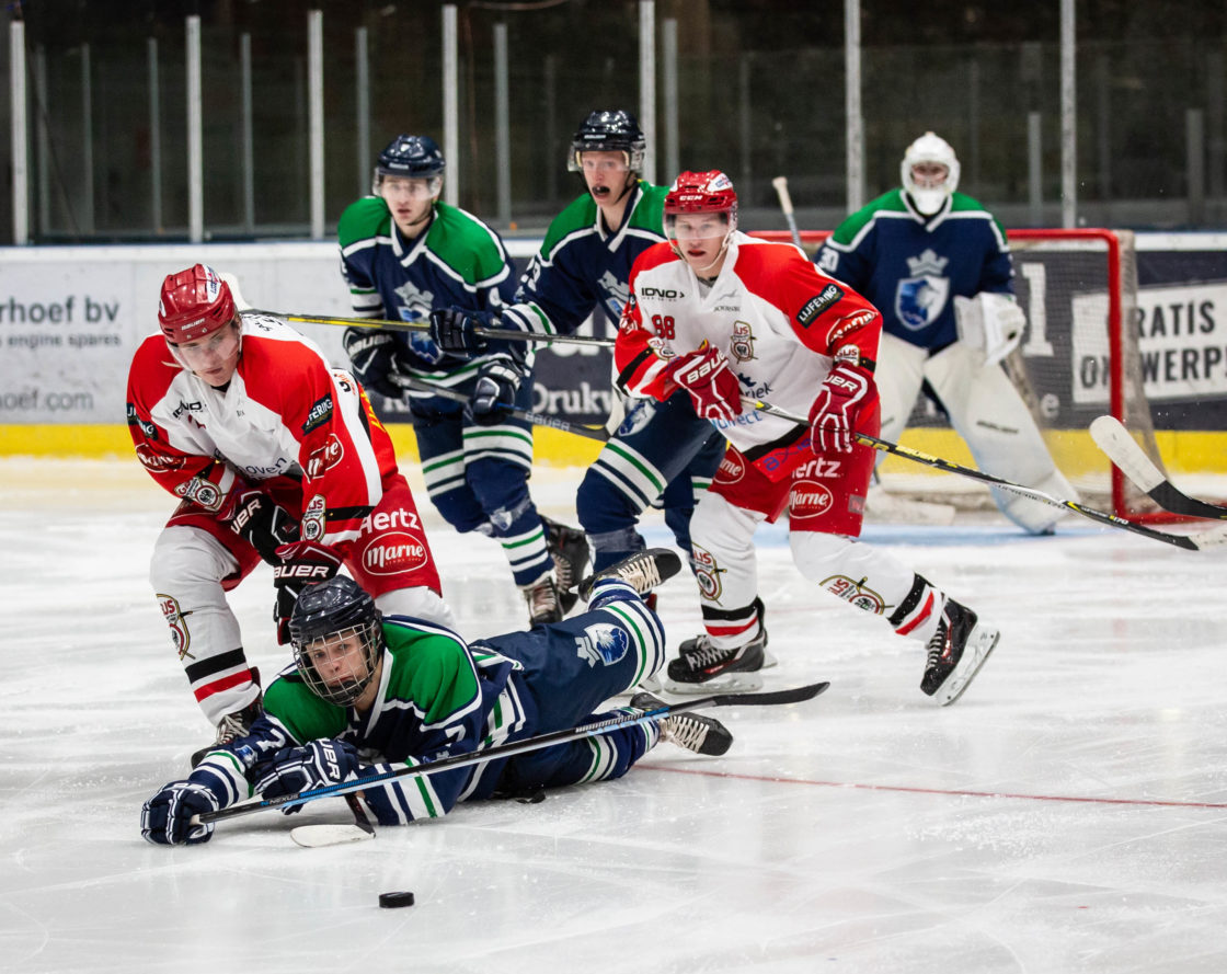 DORDRECHT – Na twee bloedstollende wedstrijden tegen HIJS Hokij Den Haag in de kwartfinales, die uiteindelijk in de 2e wedstrijd vlak voor tijd werd beslist in het voordeel van Dordrecht Lions, spelen de Dordrecht Lions in de halve finale twee wedstrijden tegen de kampioen van vorig jaar en de nummer 1 van de reguliere competitie, GIJS Groningen. (Foto: Danielle Vink)