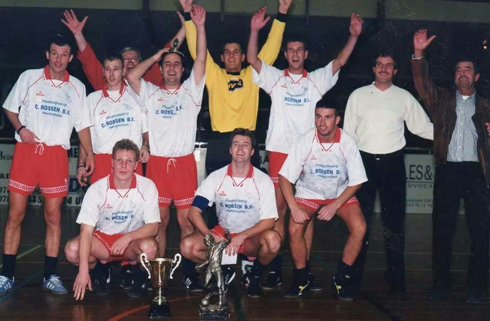 Een foto van het team van Fluks dat in 1999 de laatste editie in de Wielwijkhal op zijn naam schreef.