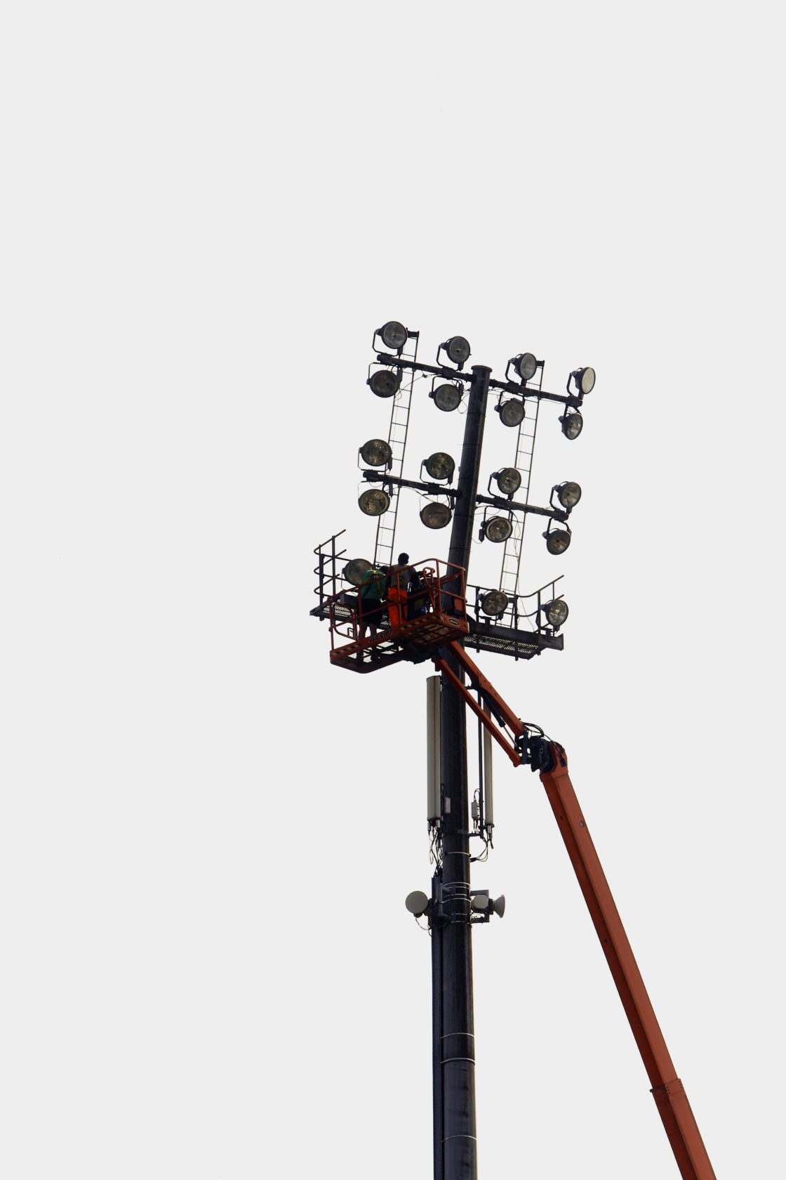 DORDRECHT – De lichtmasten in het stadion van FC Dordrecht worden voorzien van led-verlichting. De club is de eerste in de Keuken Kampioen Divisie die hiervoor kiest. Het levert niet alleen een lager energieverbruik en minder onderhoudskosten op, er kan ook meer ‘gespeeld’ worden met de verlichting. Hoe dat uitpakt, is voor het eerst te zien op 20 september tijdens de thuiswedstrijd tegen NEC. (Foto’s: Thymen Stolk)