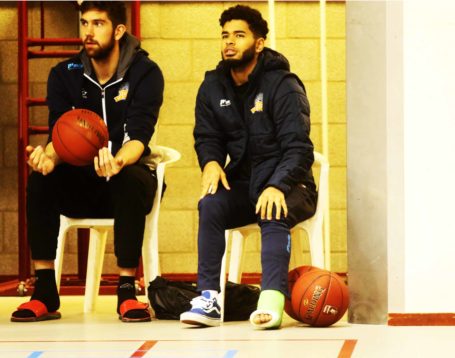 DORDRECHT-Ondanks de zware blessure, een kuitbeenbreuk die Dutch Windmills basketballer Alec Wintering (rechts)vijf dagen eerder opliep in de met 73-46 gewonnen thuiswedstrijd tegen Den Helder Suns was de onfortuinlijke Amerikaanse Point Guard vrijdagmiddag aandachtig bezoeker van de open training. Volgende week zal pechvogel Wintering een operatie ondergaan, waarna gestart kan gaan worden met zijn herstel.