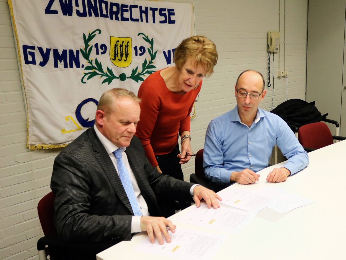 ZWIJNDRECHT – Jumbo Supermarkten Zwijndrecht heeft een 3-jarig sponsorcontract afgesloten met Gymnastiekvereniging O&O. De eerste contacten daartoe zijn gelegd gedurende de zogenaamde plaatjesactie, die door Jumbo werd georganiseerd. Onder toeziend oog van voorzitter Pauline den Hartog werd het contract ondertekend door Peter Verhoef van Jumbo (links op de foto) en Marc van Alebeek (Businessclub O&O). Als aftrap ontving O&O vanuit de Jumbo-organisatie een kerstverrassing voor al haar 153 vrijwilligers.