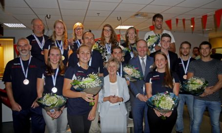 DORDRECHT – Leden van de Dordtse Reddingsbrigade (DRB) hebben bij het WK Lifesaving tien medailles in de wacht gesleept. Ze werden vrijdag gehuldigd. Burgemeester Brok en wethouder Reynvaan waren hierbij aanwezig.