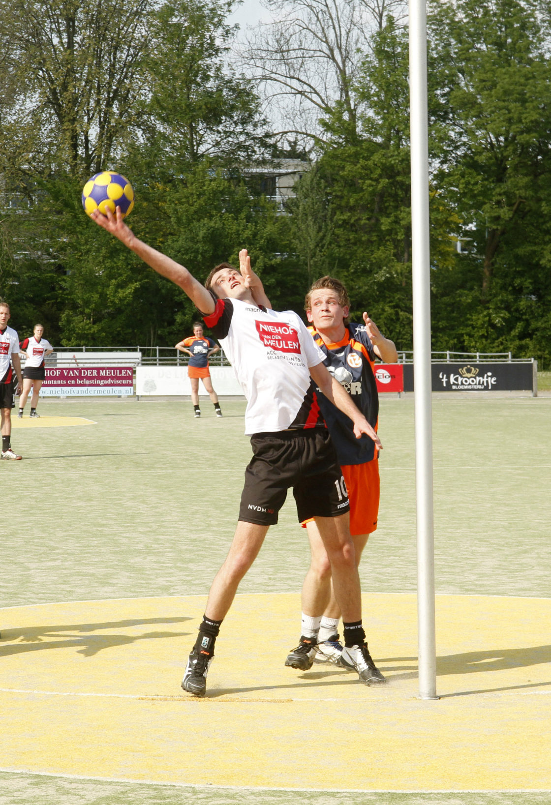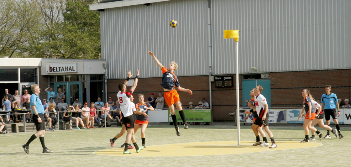 DORDRECHT – De korfballers van Sporting Delta hebben zaterdagmiddag hun thuiswedstrijd tegen concurrent Tweemaal Zes verloren. In de hoofdklasse B staat Sporting Delta na de 16-21 weer laatste in de poule. De huidige trainer van Tweemaal Zes, Eric Geijtenbeek, wordt komend korfbalseizoen de nieuwe hoofdtrainer van Sporting Delta. Hij volgt Steven Mijnsbergen op, die bondscoach wordt van België. (Foto’s: Thymen Stolk)