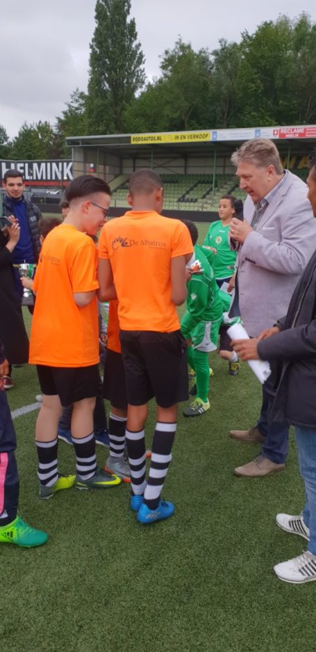 Vorige week woensdag vond de tweede editie van het straatvoetbaltoernooi voor de groepen 7 en 8 van Dordtse basisscholen plaats, een sportevenement dat is opgezet door Giuliano Soerdjbalie en steeds meer steun krijgt van allerlei partijen. De voorrondes vonden net als vorig jaar plaats op het Energieplein. Nieuw was dat de finales plaatsvonden in het stadion van FC Dordrecht. Wethouder Marco Stam (BVD, Sport) was er vrijdagavond bij voor de prijsuitreiking. De winnaars gingen met kaartjes voor Duinrell naar huis, voor de tweede plaatsen waren er bioscoopkaartjes. Giuliano kijkt tevreden terug. En vooruit: “Uiteraard zijn we er komend school jaar weer bij met een spectaculaire derde editie!”