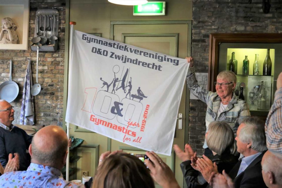 ZWIJNDRECHT – In oudheidskamer De Vergulde Swaen in Zwijndrecht is zaterdag onder grote belangstelling een tentoonstelling geopend ter gelegenheid van het 100-jarig bestaan van gymnastiek- en turnvereniging O&O. Vertegenwoordigers vanuit de KNGU, de gemeenteraad, sponsoren, besturen, maar ook de vier ereleden van de vereniging, Jan Valk, Corrie van der Velde, Wil in ’t Veld en Lenie Tempelaar, waren erbij. Laatstgenoemde onthulde de speciale jubileumvlag. De tentoonstelling, die tot eind oktober te bezichtigen is, vormt het startsein van tien evenementen die de vereniging dit jaar organiseert ter gelegenheid van het eeuwfeest.