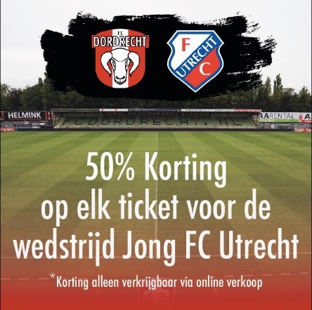 DORDRECHT – FC Dordrecht speelt vrijdag 3 mei haar laatste competitiewedstrijd van het seizoen 2018-2019. Tijdens deze wedstrijd zal er afscheid worden genomen van een aantal spelers binnen de selectie. Jong FC Utrecht, de nummer laatst van de competitie, komt op bezoek in het Riwal Hoogwerkers Stadion. Voor de laatste wedstrijd van het seizoen heeft FC Dordrecht voor haar supporters een aantrekkelijke actie. Alle tickets zijn voor deze wedstrijd voor de halve prijs verkrijgbaar. Let op: de kaarten voor deze actie zijn alleen online verkrijgbaar op www.fcdordrecht.nl.