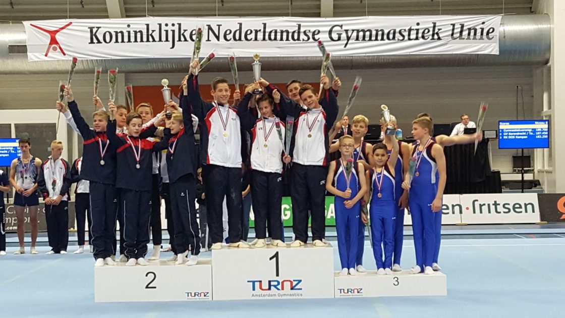 ZWIJNDRECHT – Het O&O-jongensteam-niveau-8 heeft bij het in Amsterdam gehouden Nederlands kampioenschap voor clubteams beslag gelegd op de nationale titel. Het team met turners Paul de Jongh, Gijs Zijderveld, Ian Wevers, Bodi Winkler, Jelle van der Zouwen en Tristan Massie pakte het goud met 189,700 punten. Op niveau-7 veroverde de Zwijndrechtse turnclub het zilver met de formatie Koen Kappetijn, Ruben Reedijk, Bram van Gemert, Leon van der Wel, Sebastiaan Pel en Jelle van der Lans. Deze turners kwamen tot een totaalscore van 198,850 punten. Zilver was er eveneens voor het seniorenteam samengesteld met Jens van der Helm, Thijs Oosterling, Bart de Ruiter en Thomas Kok. Dit team kwam uit op het hoogste niveau-4. Na een gelijk opgaande strijd stond het team aan het eind met 213,550 punten gelijk met het de turners van Swentibold-Sittard.